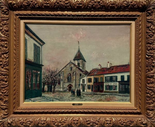 モーリス・ユトリロの《郊外の教会》は、20世紀初頭のパリ近郊を舞台とした一見素朴な風景画でありながら、その内奥には、都市の周縁に沈殿する時間と人間の内面的静寂とが、繊細に折り重なっている。本作は、彼がいわゆる「白の時代」を経て、色彩の再編へと向かう過渡期に位置づけられる作品であり、その表現は単なる郊外の記録を超え、精神の風景としての深度を獲得している。