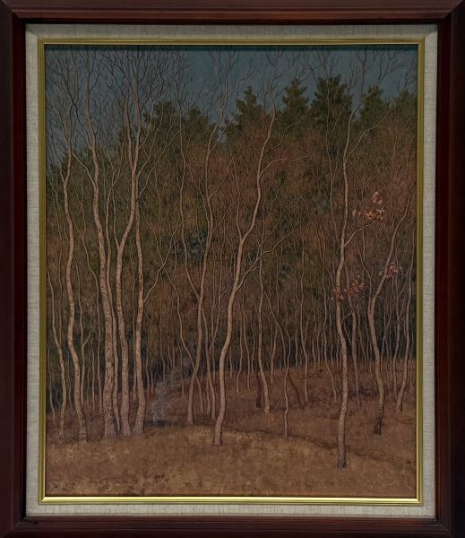 この作品を戦後美術の文脈に位置づけると、その特異性は一層明らかになる。昭和二十年代、日本の美術界では前衛的な表現が台頭し、抽象や実験的手法が盛んに試みられていた。その中で、野十郎はあえて具象表現を保ちつつ、外面的な革新ではなく内面的な深化を追求した。《落葉焚き》は、その姿勢を端的に示すものであり、時代の潮流とは異なる場所から、より根源的な問いを投げかけている。
