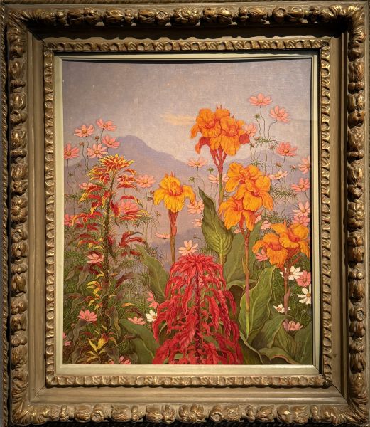 このように見ると、《カンナとコスモス》は単なる花の静物画ではなく、時間と生命の相を可視化した作品といえる。カンナは盛りの力を象徴し、コスモスは衰退の気配を含む。しかし両者は対立するだけではなく、同一の画面において共存する。そこには、生命が常に二つの方向を同時に孕んでいるという認識がある。生は常に死を含み、充実は同時に消滅への道程でもある。その二重性が、静かにしかし明確に示されている。