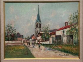 【郊外の教会 — 静寂の街路に宿る“祈りの地層”】モーリス・ユトリロ